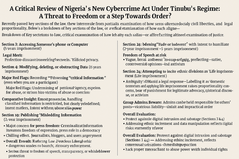 The recently passed Cybercrime Act, now enforceable law in Nigeria, has sparked significant controversy. While cybersecurity is a crucial and necessary area of legislation in today’s digital world, the content and implications of this Act raise serious concerns from the standpoint of natural justice, civil liberties, and legal proportionality.